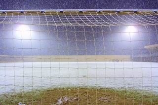 Así, el colegiado Óscar Pérez Caja acordó con los capitanes de ambos equipos el aplazamiento debido a que la helada superficie sintética podía poner en peligro la integridad de los jugadores.