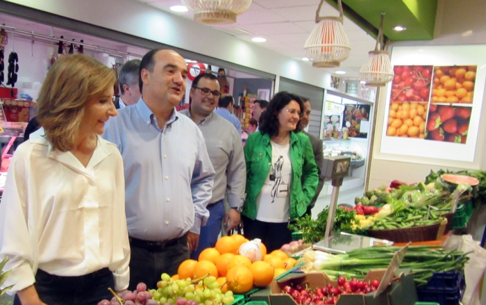 La titular de Fomento, ha visitado el tradicional Mercado de Abastos, donde departió con los mercaderes y usuarios, y también visitó distintos comercios y establecimientos del centro de la ciudad.