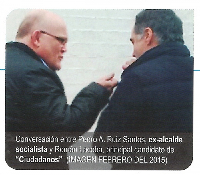 En este sentido, matizó que si a esta división se le añade el pasado político del candidato socialista en su pueblo natal Navalcan, donde fue concejal en un partido independiente con una alcalde de derechas, y el pasado político de otros que van en su candidatura, no es una buena tarjeta de presentación ante los vecinos, y que por ello, a Pedro Antonio Ruiz le ha venido como agua de mayo que apareciera Ciudadanos en Villarrobledo, porque según reveló, en mayo de 2013, el candidato de Ciudadanos ya promovió el Partido Unión Liberal sin éxito, y posteriormente en el mes de enero de 2014, trató d que la antigua AIV volviera a presentarse, para finalmente anunciar que se presentaba por Ciudadanos.